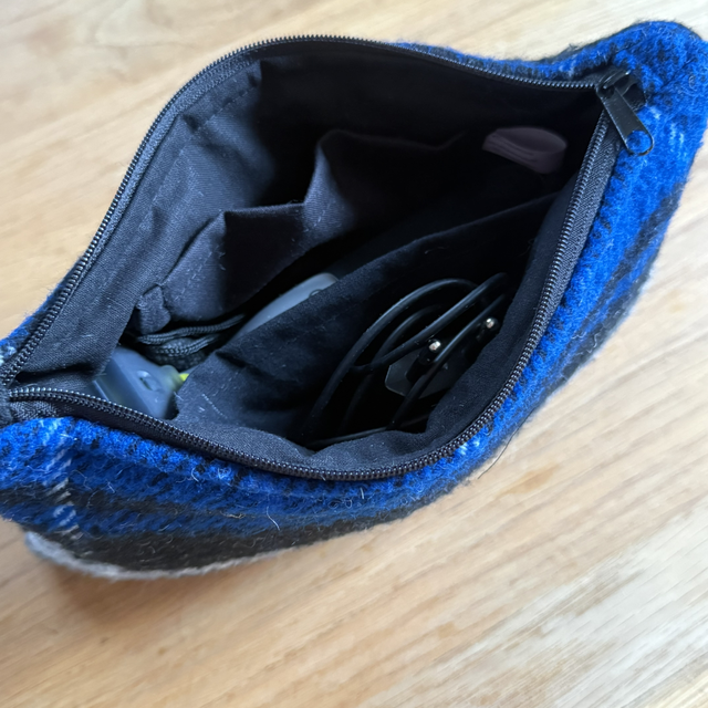Fabriquée à la main avec des tissus revalorisés pour un accessoire éco responsable.